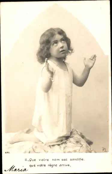 Ak Portrait eines Mädchens in weißem Kleid, Gebet, Fragen