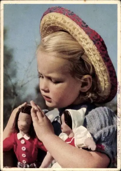 Ak Portrait eines Mädchens mit Hut mit ihren Puppen