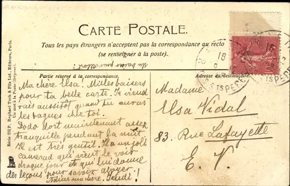 Zustand, siehe Scan, gelaufen, 1908 - ca 14 cm X 9 cm