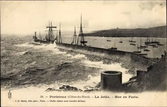 Ak Portrieux Cotes d'Armor, La Jetee, Mer en Furie