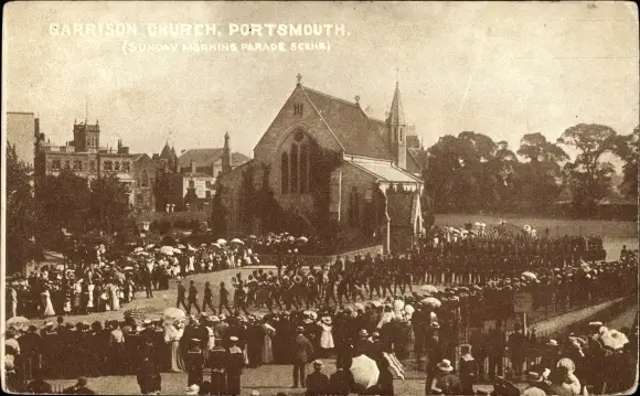 Ak Portsmouth Hampshire England, Garrison Church, Sunday Morning Parade Scene