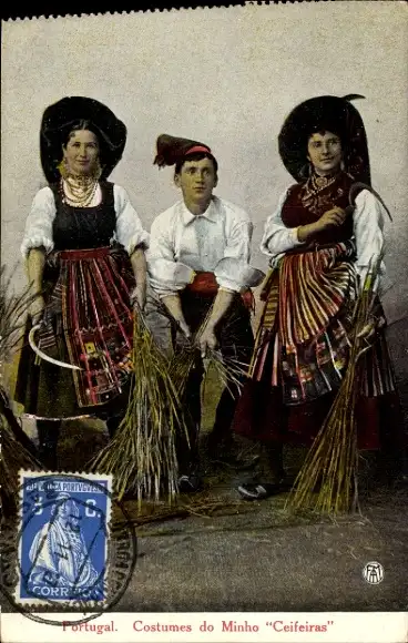 Ak Portugal, Portugiesinnen in Tracht, Costumes do Minho Ceiferras