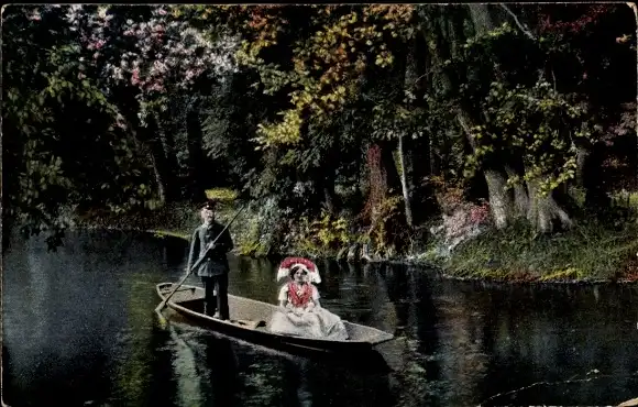 Ak Post im Spreewald, Frau in Volkstracht, Ruderboot