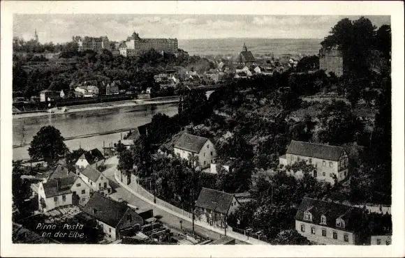 Ak Posta Pirna in Sachsen, Panorama, Elbe, Kirchturm