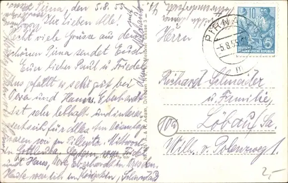 Zustand, siehe Scan, gelaufen, 1955 - ca 14 cm X 9 cm