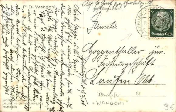 Ak Postdamper Wangoni, Woermann-Linie, Deutsche Ost-Afrika-Linie, Hamburg