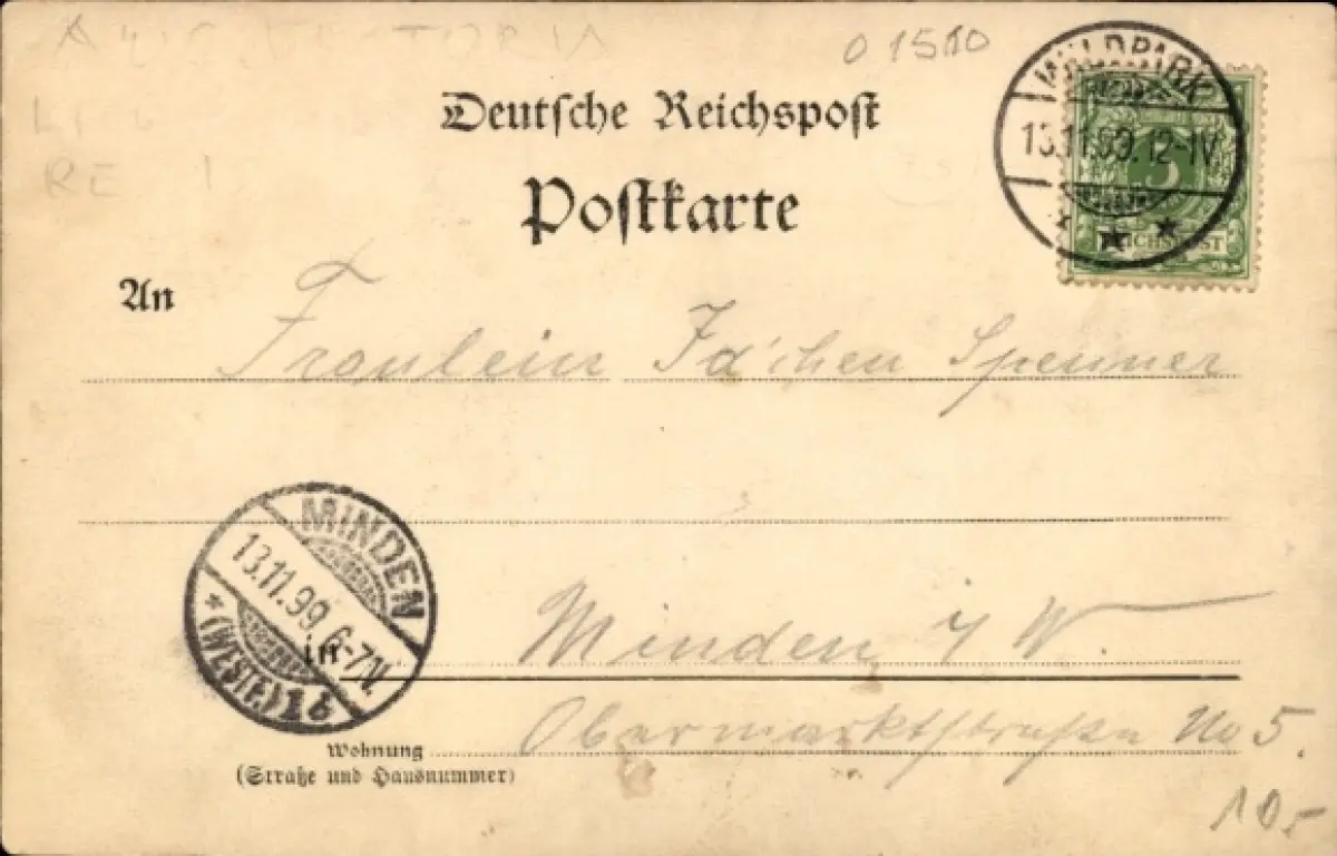 Zustand, siehe Scan, gelaufen, 1899 - ca 9 cm X 14 cm