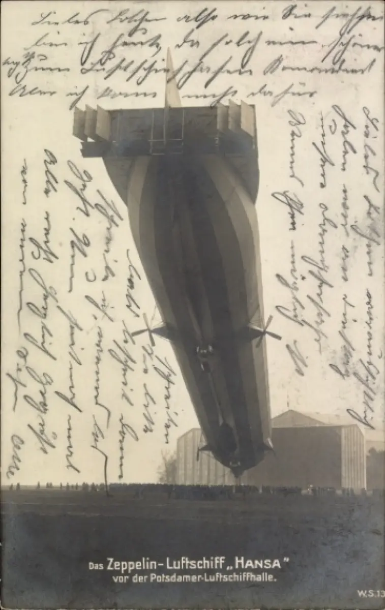 Ak Potsdam, Zeppelin-Luftschiff Hansa, Luftschiffhalle