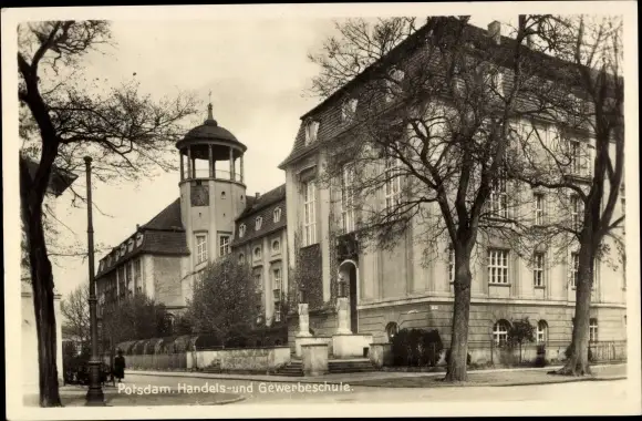 Ak Potsdam in Brandenburg, Handels und Gewerbeschule, Straßenpartie