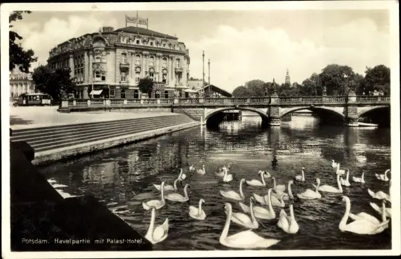 Ak Potsdam in Brandenburg, Havelpartie mit Palast Hotel, Schwäne
