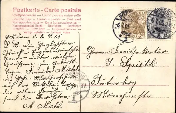 Zustand, siehe Scan, gelaufen, 1905 - ca 14 cm X 9 cm