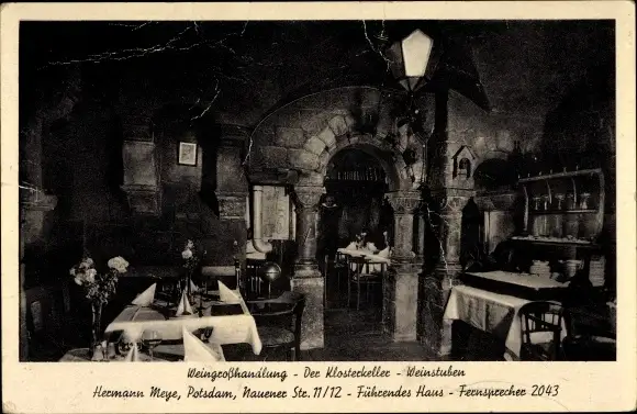 Ak Potsdam in Brandenburg, Weingroßhandlung Der Klosterkeller, Bes. Hermann Meye, Innenansicht