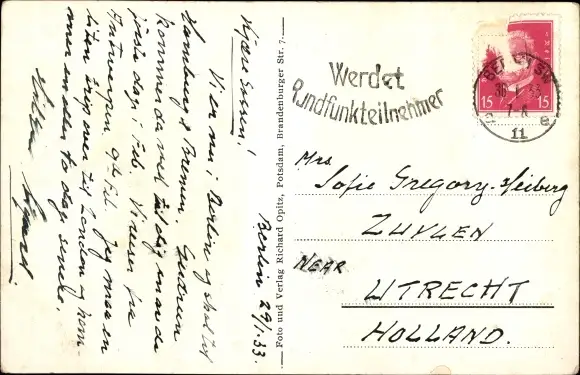 Zustand, siehe Scan, gelaufen, 1933- Bes.: Hermann Meye - ca 14 cm X 9 cm