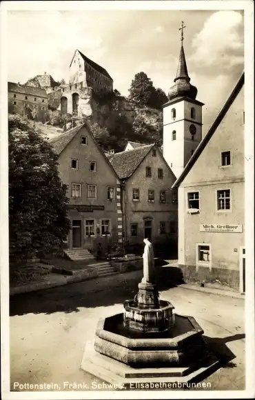 Ak Pottenstein in Oberfranken, Elisabethbrunnen, Geschäft Mich. Grellner