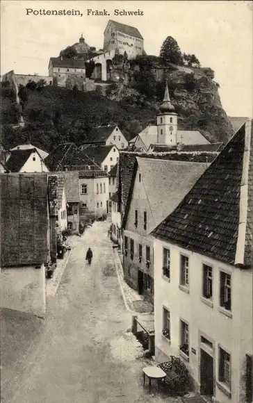 Ak Pottenstein in Oberfranken, Straßenpartie, Burg