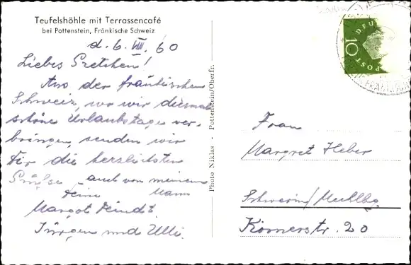 Ak Pottenstein in Oberfranken, Teufelshöhle, Teufelshöhle mit Terrassencafé, bei Pottenstein, ...