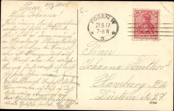 Zustand, siehe Scan, gelaufen, 1917 - ca 14 cm X 9 cm