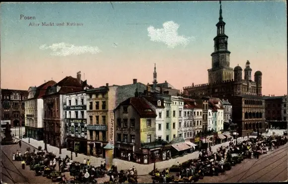 Ak Poznań Posen, Alter Markt mit Rathaus