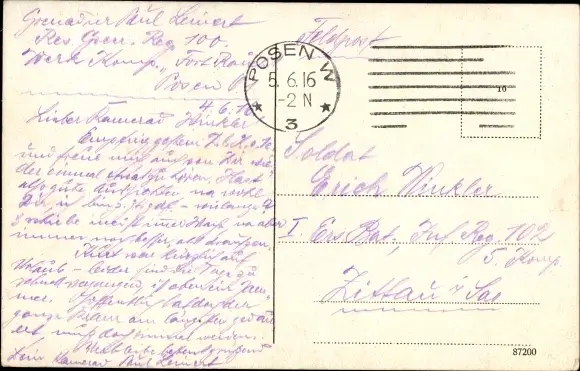 Zustand, siehe Scan, gelaufen, 1916 - ca 14 cm X 9 cm