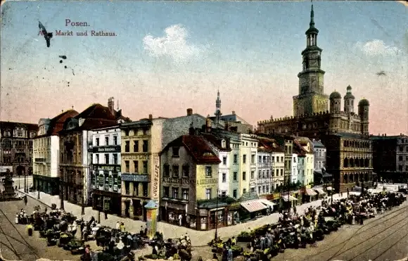 Ak Poznań Posen, Alter Markt mit Rathaus