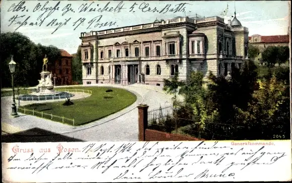Ak Poznań Posen, Ansicht vom Generalkommando, Denkmal