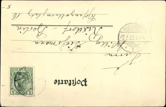 gelaufen 1903, Eckknick links unten, sonst guter Zustand