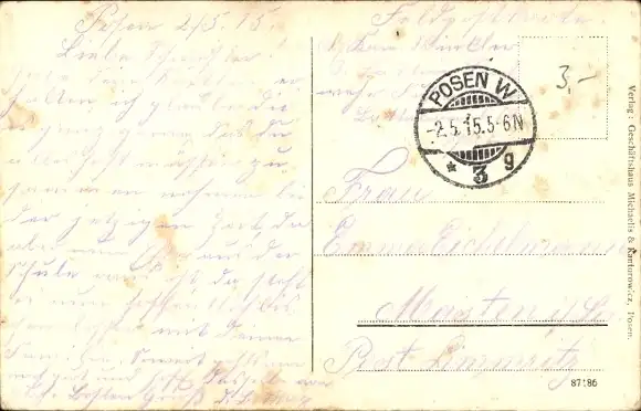 Zustand, siehe Scan, gelaufen, 1915 - ca 14 cm X 9 cm
