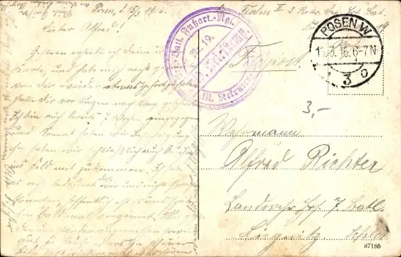 Zustand, siehe Scan, gelaufen, 1916 - ca 14 cm X 9 cm