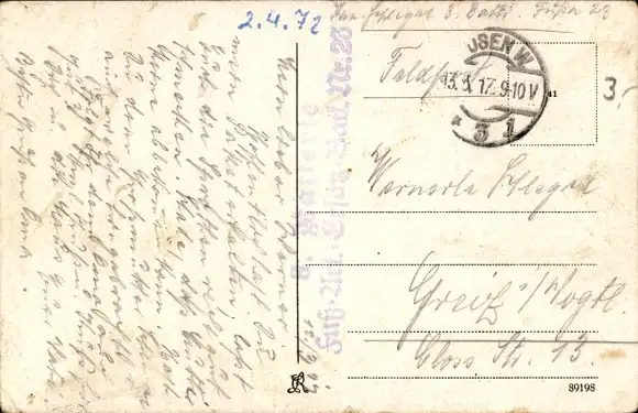Zustand, siehe Scan, gelaufen, 1917 - ca 14 cm X 9 cm