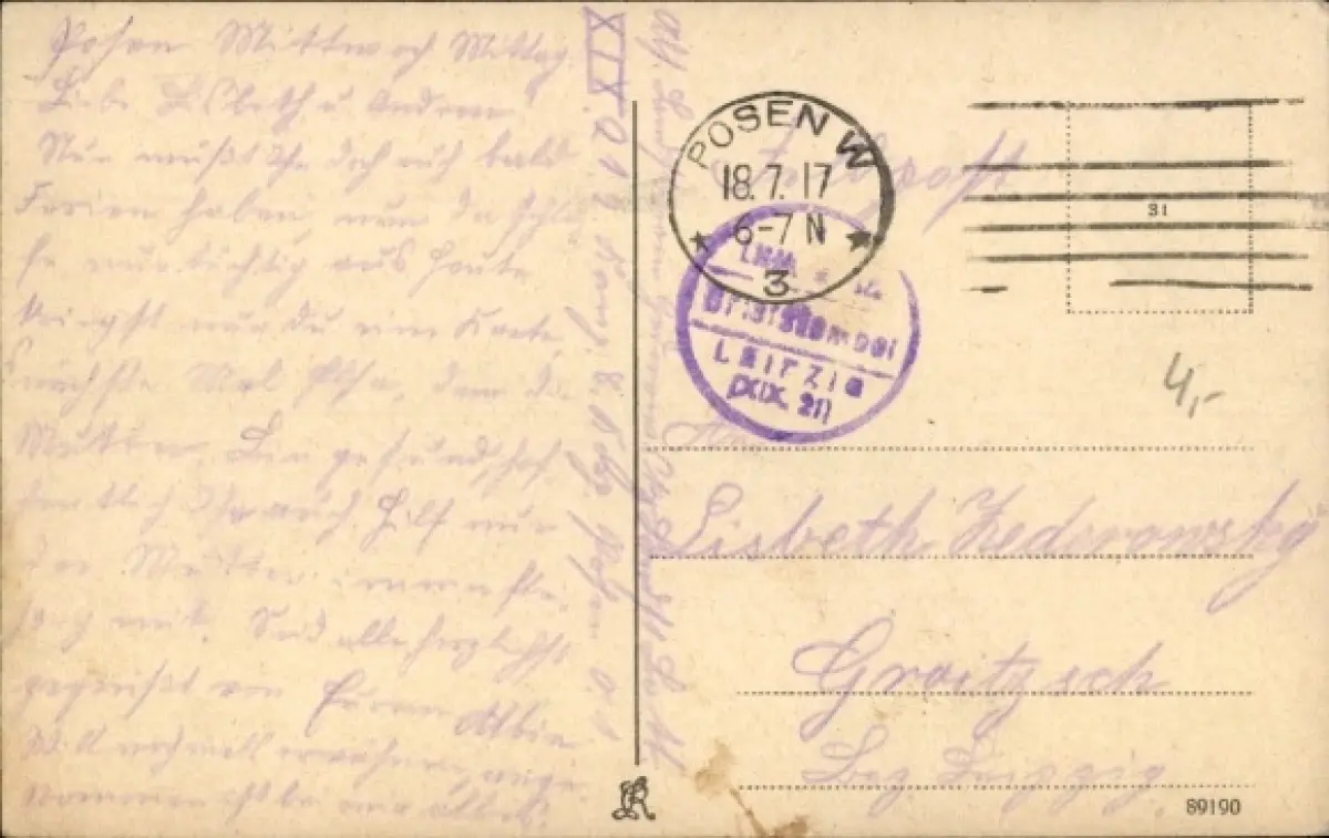 Zustand, siehe Scan, gelaufen, 1917 - ca 14 cm X 9 cm
