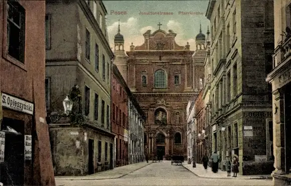 Ak Poznań Posen, Jesuitenstraße, Pfarrkirche, Geschäft von S. Opieszynski