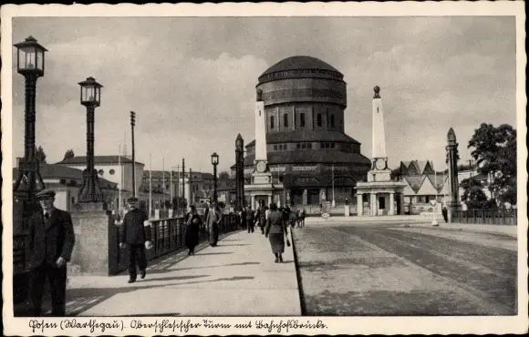 Ak Poznań Posen, Oberschlesischer Turm, Bahnhofsbrücke