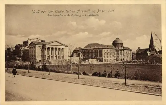 Ak Poznań Posen, Ostdeutsche Ausstellung 1911, Stadttheater, Paulikirche, Architektur
