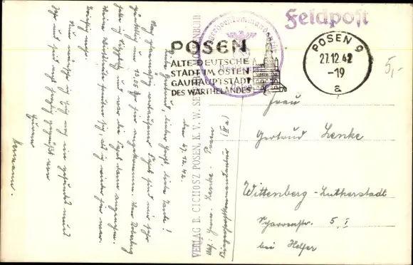 Zustand, siehe Scan, gelaufen, 1942 - ca 14 cm X 9 cm