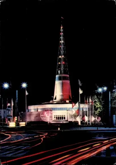 Ak Poznań Posen, Pavillon bei Nacht