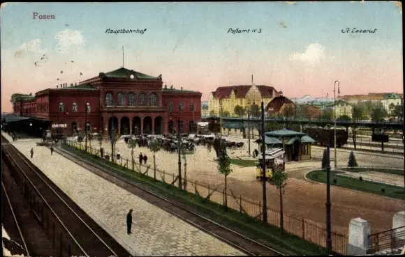 Ak Poznań Posen Polen, Hauptbahnhof, Postamt W3, St. Lazarus