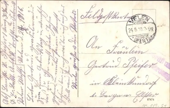 Zustand, siehe Scan, gelaufen, 1916 - ca 9 cm X 15 cm