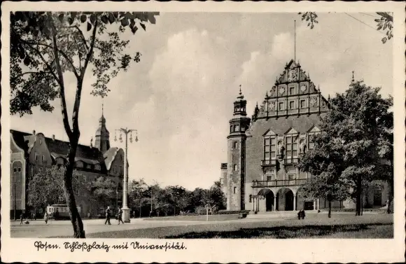 Ak Poznań Posen, Schlossplatz mit Universität