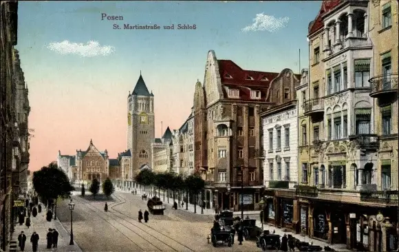 Ak Poznań Posen, St. Martinskirche und Schloss, Turmuhr