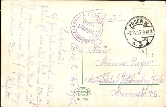 Zustand, siehe Scan, gelaufen, 1915 - ca 14 cm X 9 cm