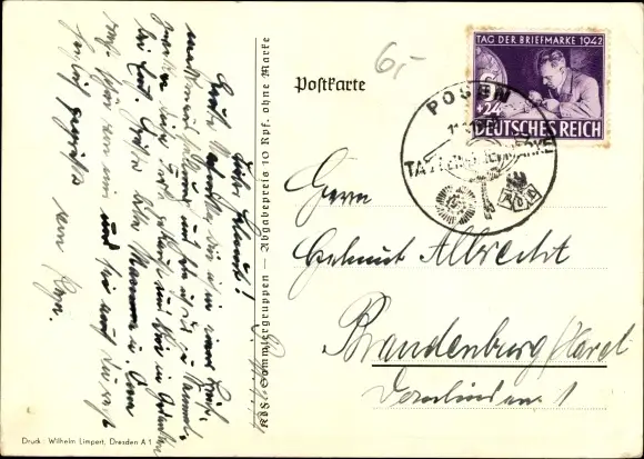 Zustand, siehe Scan, gelaufen, 1942 - ca 11 cm X 15 cm