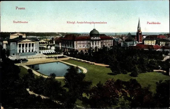 Ak Poznań Posen, Stadttheater, Kgl. Ansiedlungskommission, Paulikirche