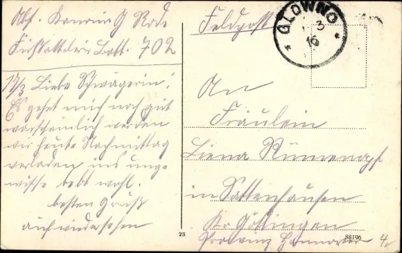 gelaufen 1916, Ecken bestoßen, leichte Stempelspur, sonst guter Zustand