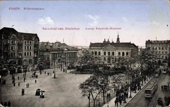 Ak Poznań Posen, Wilhelmplatz, Kaiser Friedrich-Museum, Straßenbahn