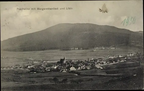 Ak Prachatice Prachatitz Südböhmen, Panorama mit Margarethenbad und Libin