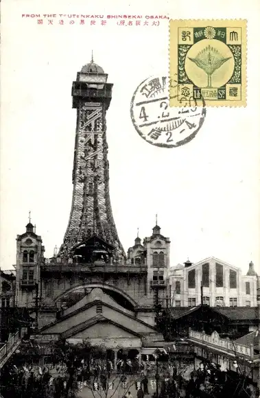 Ak Präfektur Osaka Osaka Japan, Gesamtansicht, Turm, Platz