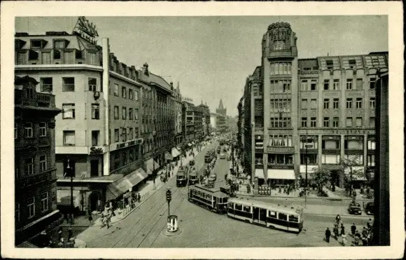 Ak Prag Praha, Graben, Prikopy, Straßenbahn, Geschäfte