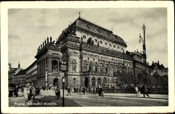 Ak Prag Stadt, Narodni Divadlo, Straßenpartie am Staatstheater