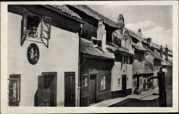 Ak Prag Tschechien, Blick in das Goldene Gässchen, Wohnhäuser, Pumpe