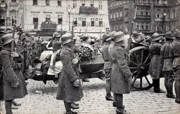 Ak Praha Prag, Defile Dustojniku pred Rakvemi na Staromestskem Namesti, Begräbnis